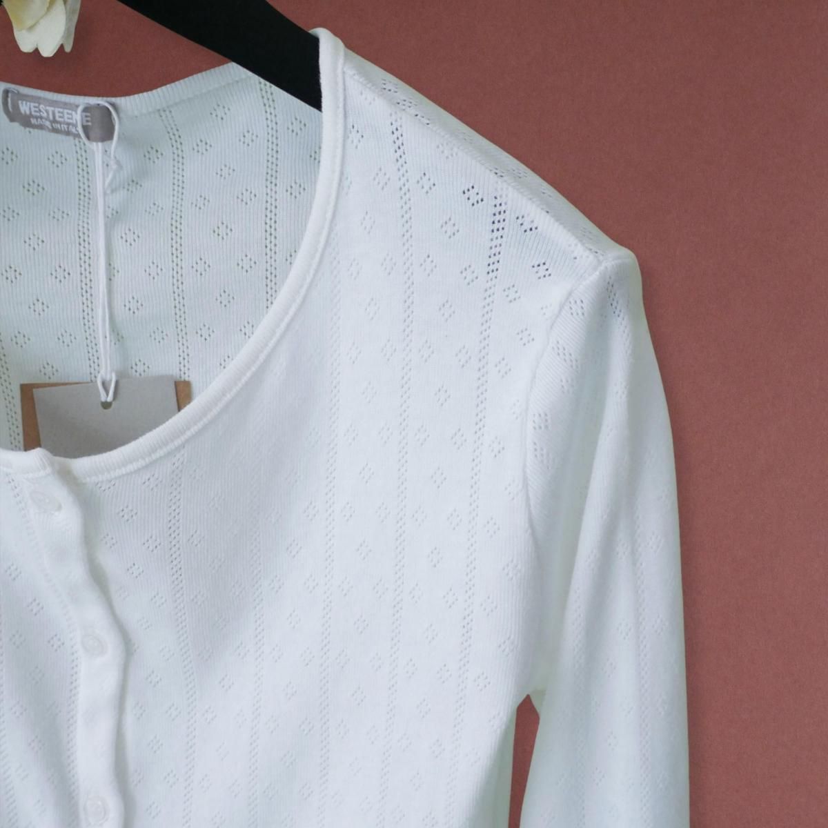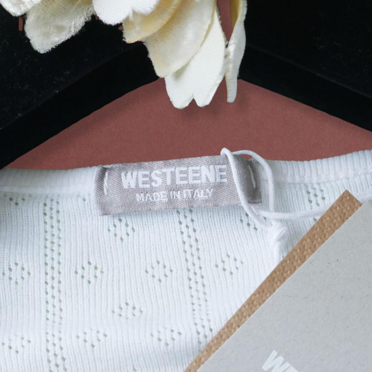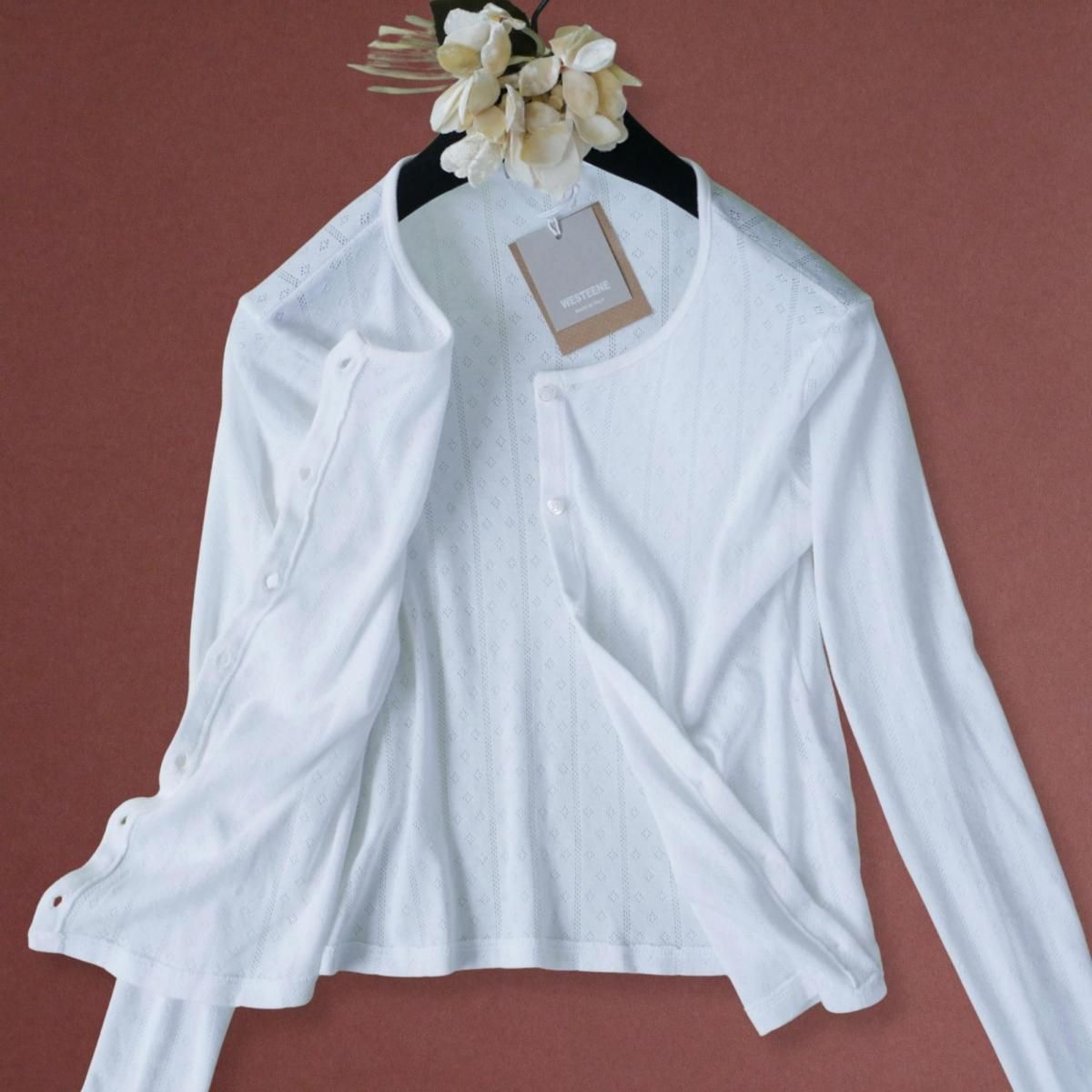 イタリアの新鋭ブランド WESTEENE「ウェステーネ」から登場した、洗練されたデザインのコットンニットカーディガン。繊細な透かし編みが施されたエレガントな表情が特徴で、シンプルながらも上品な一着です。