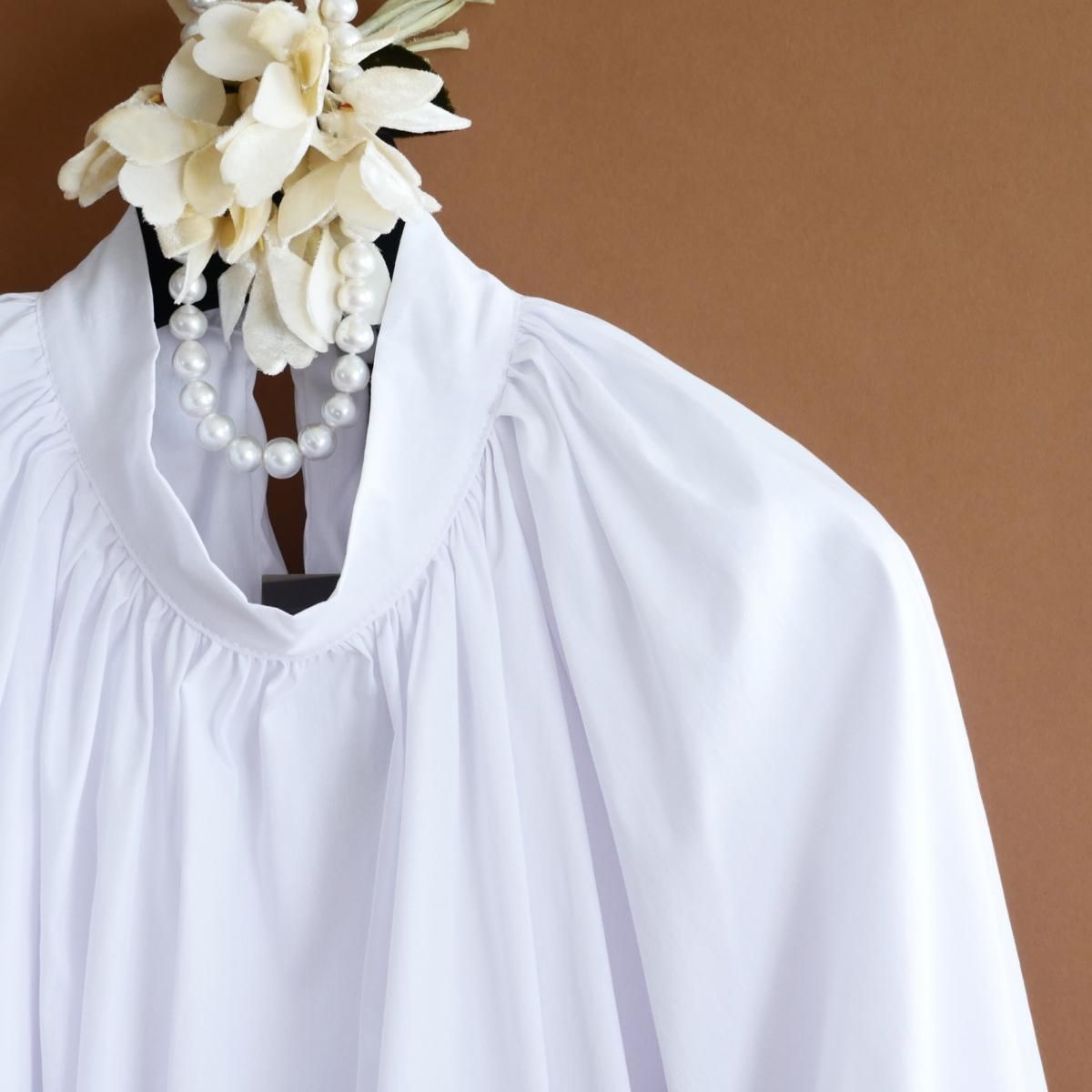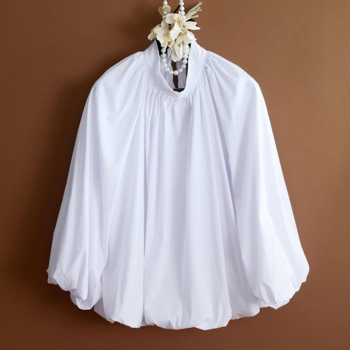 dt116フィレンツェ発の新鋭ブランド《トダミ Made in Italy》/ダブルフェイス/美しいシャーリングとバルーンシルエット/コットンブラウス/2025-26秋冬/ビアンコ