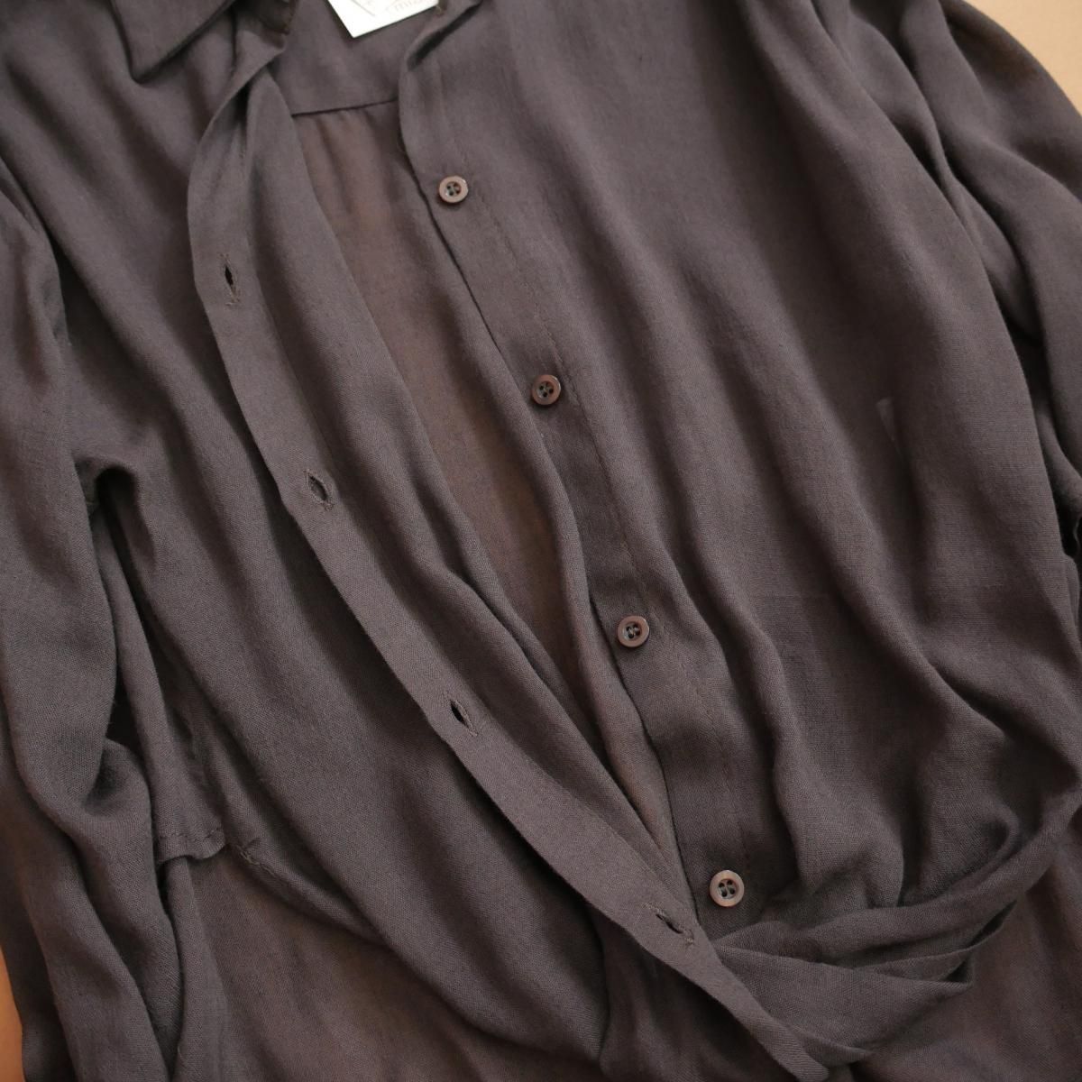 ●繊細な上質ウール生地を贅沢に用いたこちらのブラウスは、軽やかで柔らかな肌触りが魅力で、可憐で女性らしい雰囲気を引き立てます。自然な透け感を含んだテクスチャーは、イタリアンファブリックならではの洗練された質感を表現しており、シーズンを通じてエレガントなスタイリングをお楽しみいただけます。
