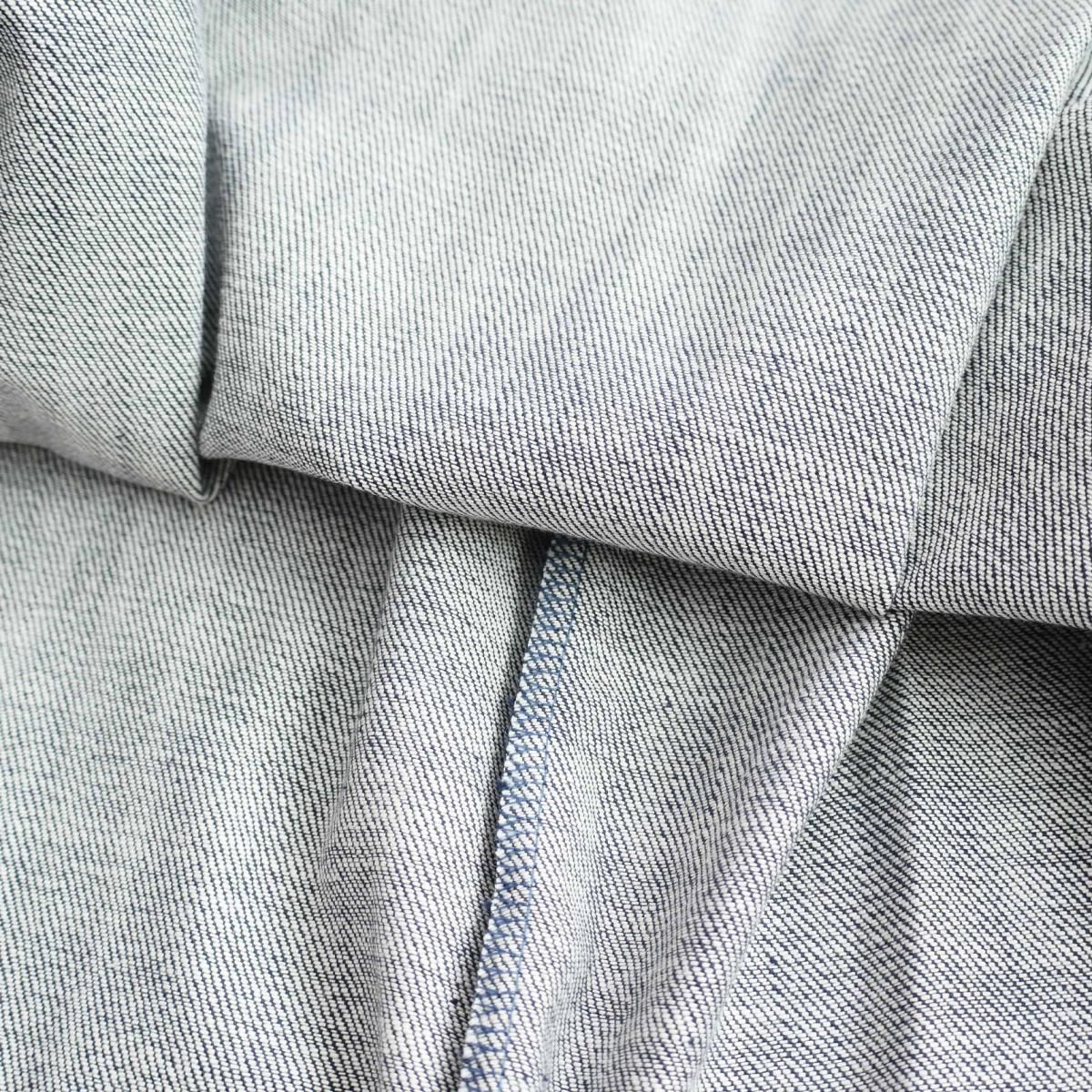 ●膝下丈の落ち着いたラインはオン・オフ問わず着回しやすく、シャツやブラウスと合わせたクラシカルなコーディネートから、カットソーやニットでリラックス感のあるスタイルまで幅広く対応可能です。素材本来の自然な艶感が、大人の装いに洗練された表情を添えます。ただのデニムスカートではない、とても存在感がございます、イタリアンファッションの現代的スタイルを反映させた、パタンナーによります美しいカッティングのデザインでございます。