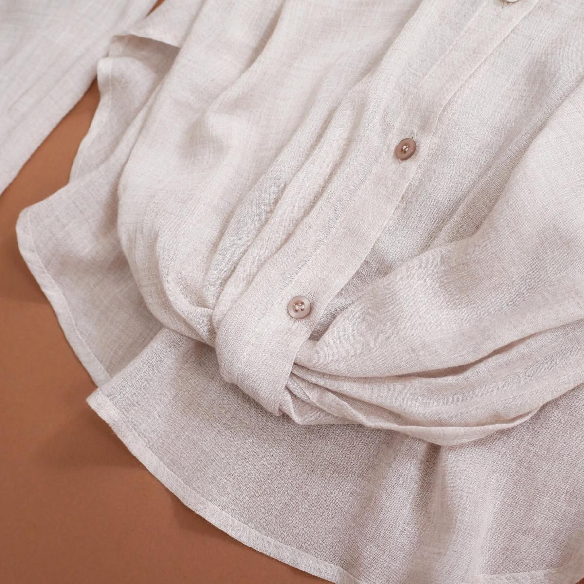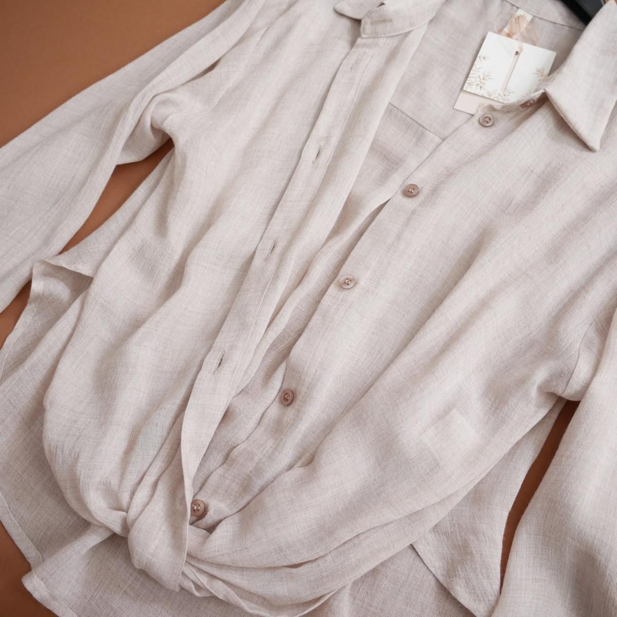 ●繊細な上質ウール生地を贅沢に用いたこちらのブラウスは、軽やかで柔らかな肌触りが魅力で、可憐で女性らしい雰囲気を引き立てます。自然な透け感を含んだテクスチャーは、イタリアンファブリックならではの洗練された質感を表現しており、シーズンを通じてエレガントなスタイリングをお楽しみいただけます。
