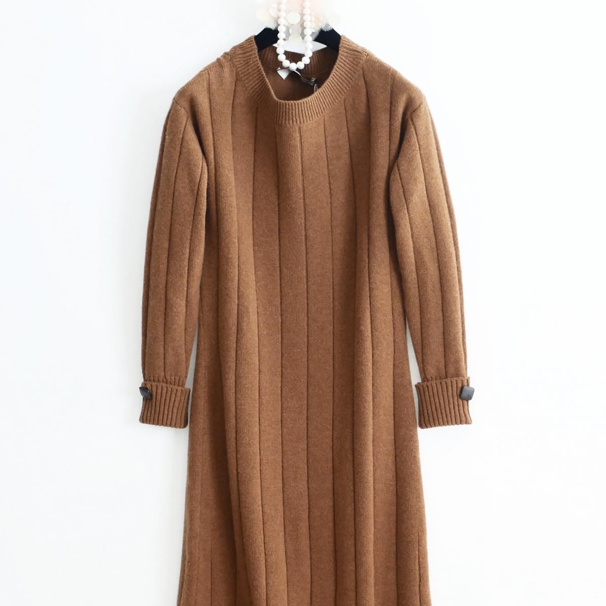●単品でさらりとお召しいただくだけでスタイルが完成するニットワンピースです。足元はロングブーツやヒールパンプスはもちろん、ショートブーツでモードな雰囲気にも。上質な素材感が際立つため、コートインにも重ねやすく、デイリーからお出かけシーンまで幅広くご活用いただけます。