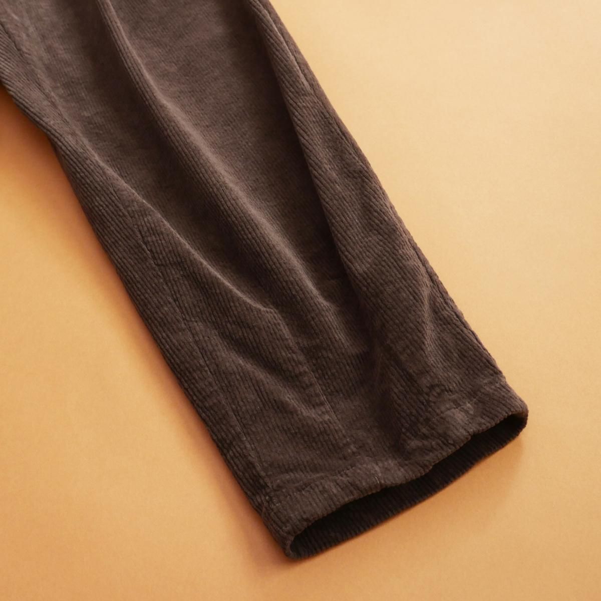 ●落ち着きのあるくすみブラウンのカラーは、コーディネートに柔らかさと深みを添え、同シリーズのコーデュロイジャケットとのセットアップスタイルもおすすめです。シンプルでありながらもミラノらしいモード感を漂わせる一本です。