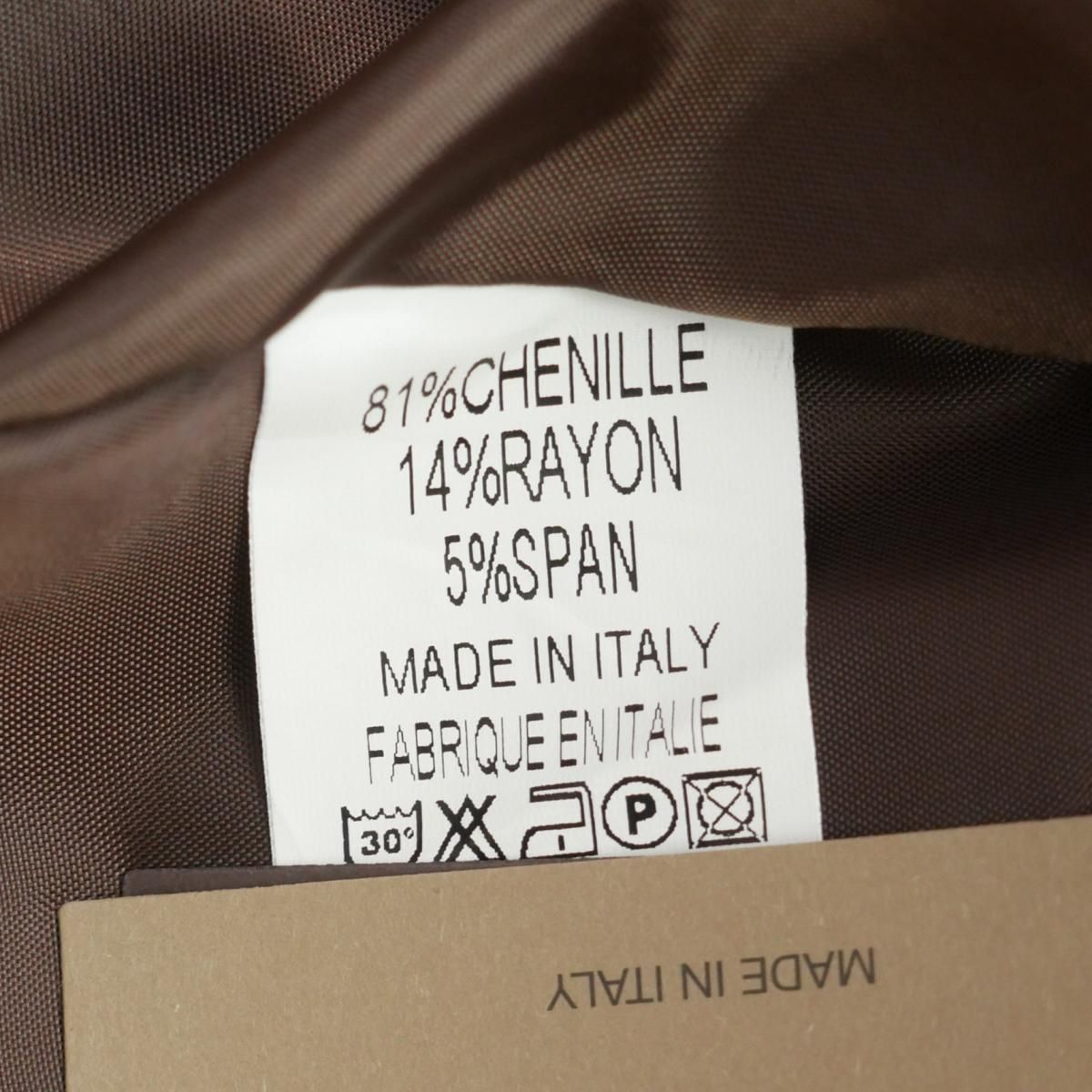 ●素材には、しなやかな光沢とぬめり感を持つシェニールを主体とした上質なファブリックを使用。 柔らかく肌あたりも良く、ほんのりとした艶がラグジュアリーな表情を引き立てます。 裏地付きで着心地も快適、秋口から冬にかけて長くご愛用いただけます。軽やかさと暖かみを両立した、イタリアンファブリックの真髄を感じていただけます。